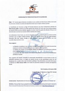 Accueil A LA UNE Enlèvement de Néné Oussou Diallo : le TLP dénonce et demande sa... A LA UNEACTUALITEPOLITIQUE Enlèvement de Néné Oussou Diallo : le TLP dénonce et demande sa libération immédiate Par Kouyate - 10 janvier 2026 80 0 Facebook Twitter Pinterest WhatsApp ARTICLES CONNEXESPLUS DE L'AUTEUR A LA UNE Vision 2050 de la CEDEAO : le Secrétaire général du SPPG échange avec d’autres de la sous-régionale au Nigéria A LA UNE Démission du gouvernement : les secrétaires généraux chargés d’expédier les affaires courantes (décret) A LA UNE Cour Suprême : le Président Mamadi Doumbouya déclare ses biens